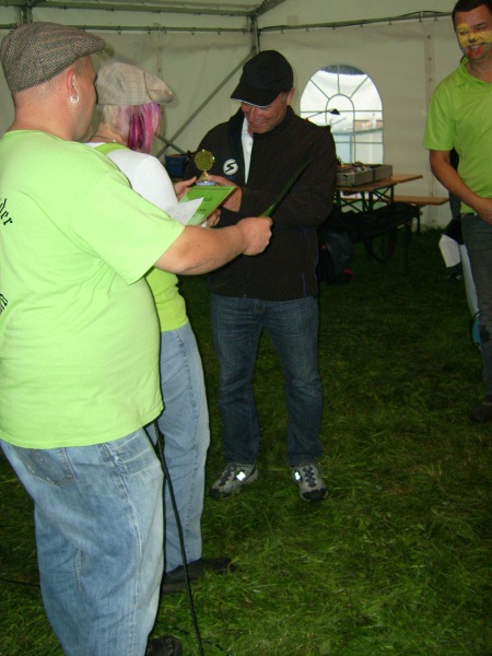 Andy nimmt den Pokal für das schönste Fahrzeug am Platz entgegen